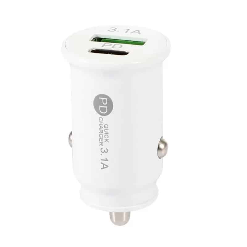 Dual Ports 3.1A Type C PD USB-C Car Charger Auto Power Adapter