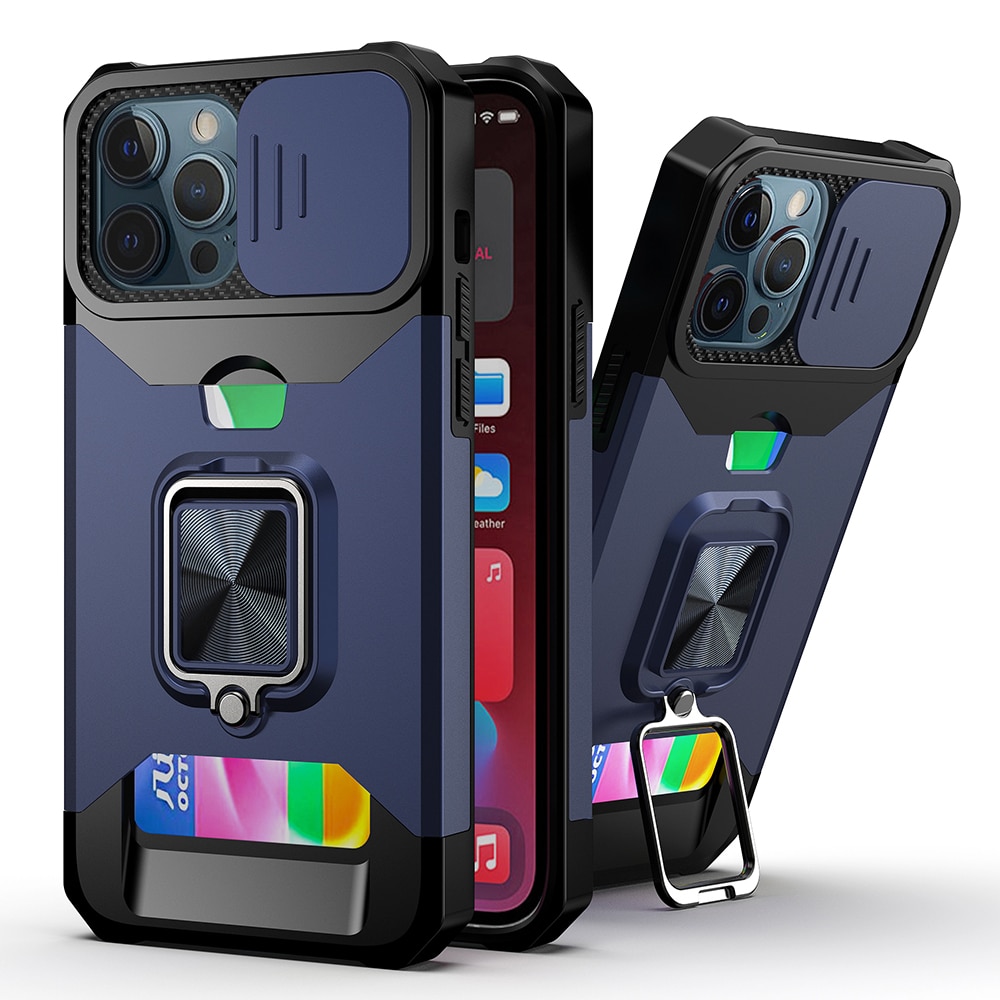 For Apple iPhone 12 & iPhone 12 Pro (Open Camera Hole) Multi-Functional Card Magnetic Ring Stand Hybrid Camera Case Cover