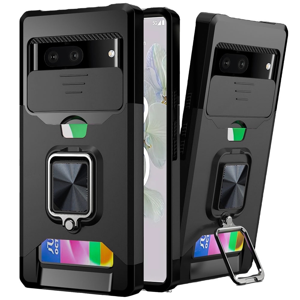 For Google Pixel 6A 6.1″ Multi-Functional Card Magnetic Ring Stand Hybrid Camera Case Cover