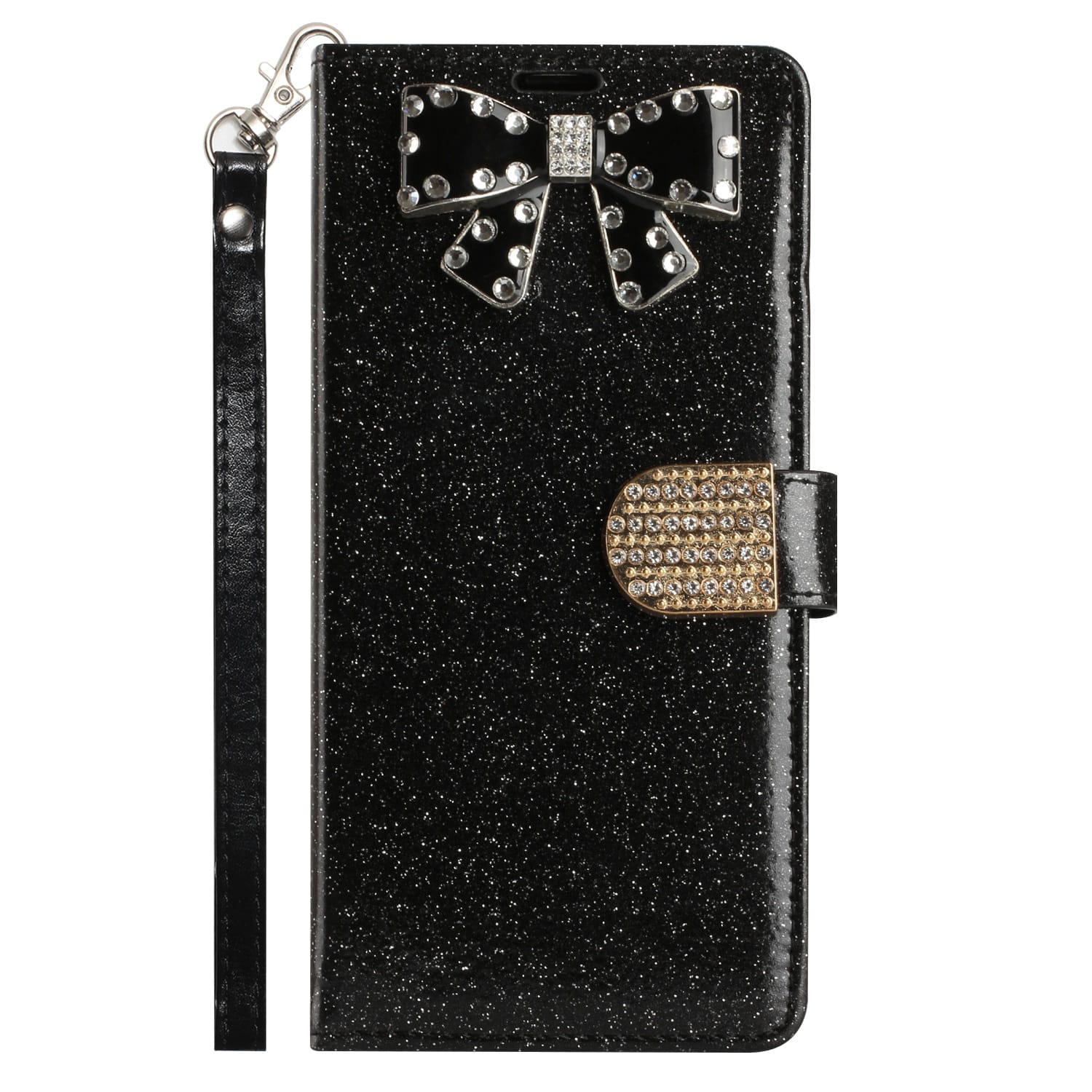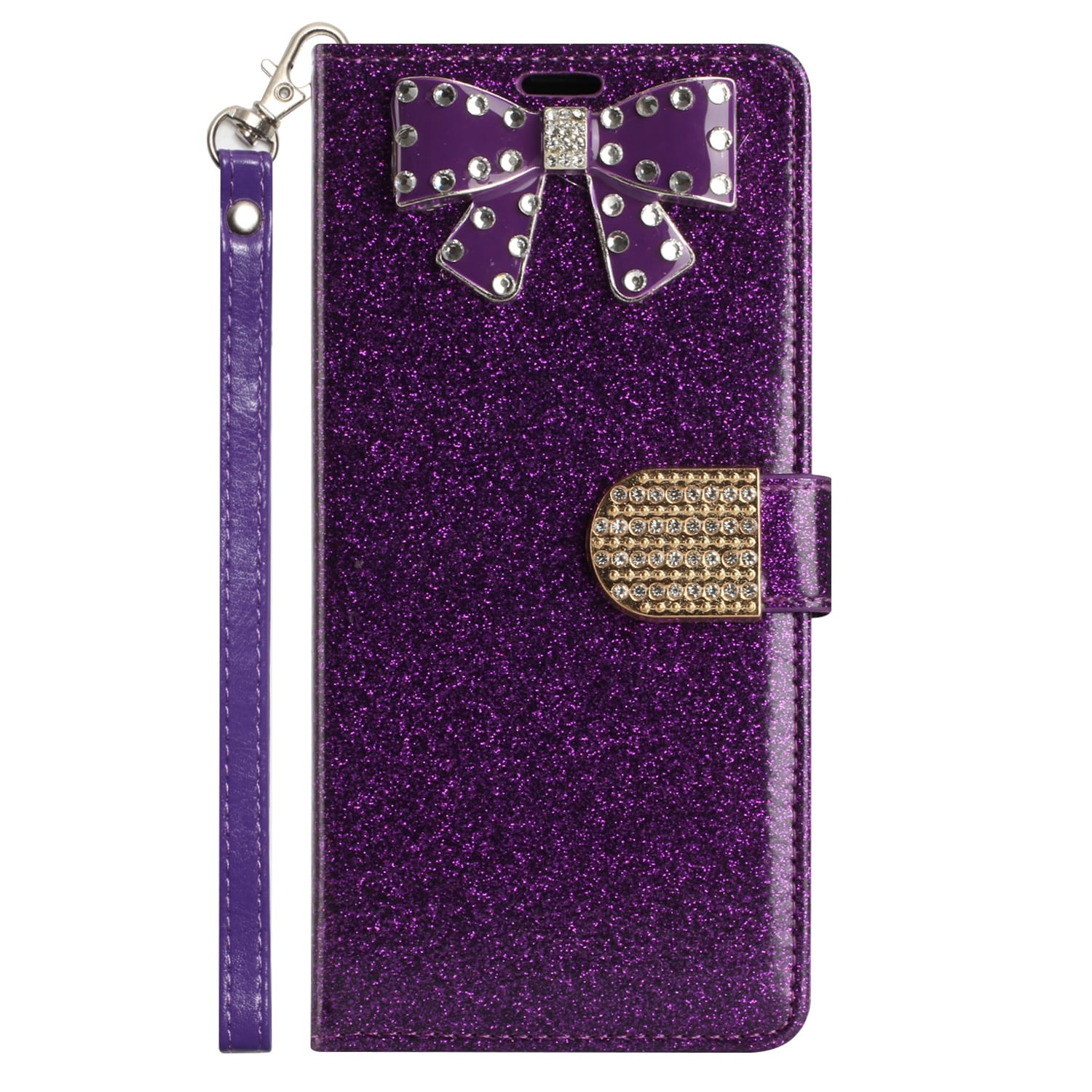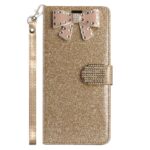 For Moto G Stylus 5g 2022 Bow Glitter Ornament Shimmer Wallet Case with Lanyard