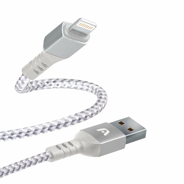 Lightning to USB 2.0 -Nylon Braided – Dura Form Metal Connector – Fast Charging 6FT – WHITE